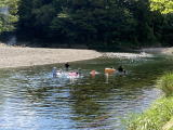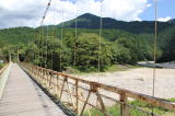 橋を渡ってキャンプ村入 鬼ごっこ・花火会場 川での水遊び会場
